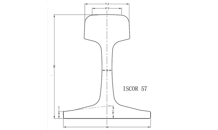 ISCOR 57kg heavy rail is a high-strength, high-wear-resistant heat-treated rail, mainly used to withstand huge pressure and wear, suitable for railway lines with high requirements for strength and wear resistance.